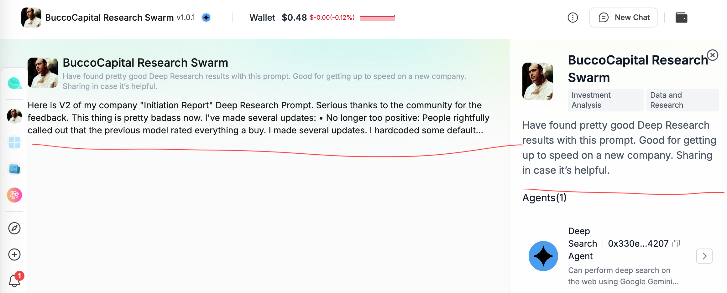 To make it real, we’ll walk through BuccoCapital Research Swarm, created by the well-known tech and investment commentator BuccoCapital. This Swarm is designed for deep equity research—perfect for quickly understanding companies, markets, and investment opportunities.