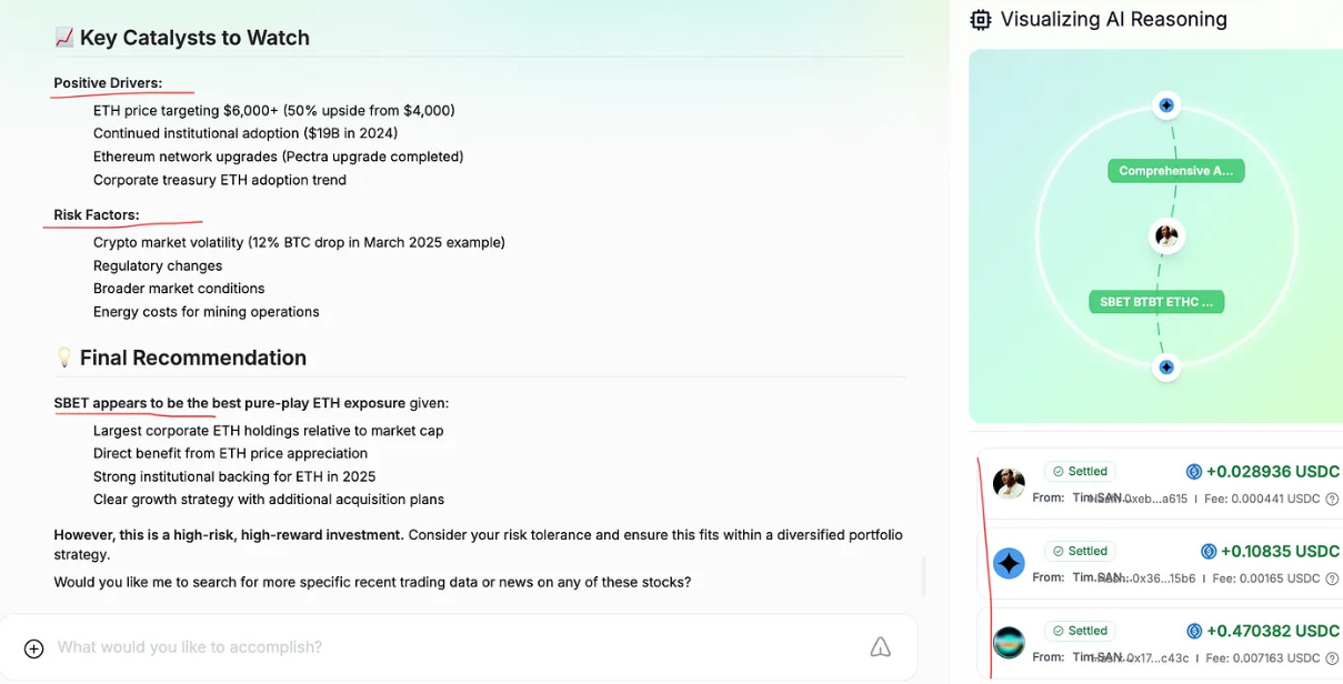 One unique benefit of Questflow is the on-chain Agent Wallet. Throughout this session, each step triggered a small micro-payment—clearly shown in USDC with associated transaction hashes.