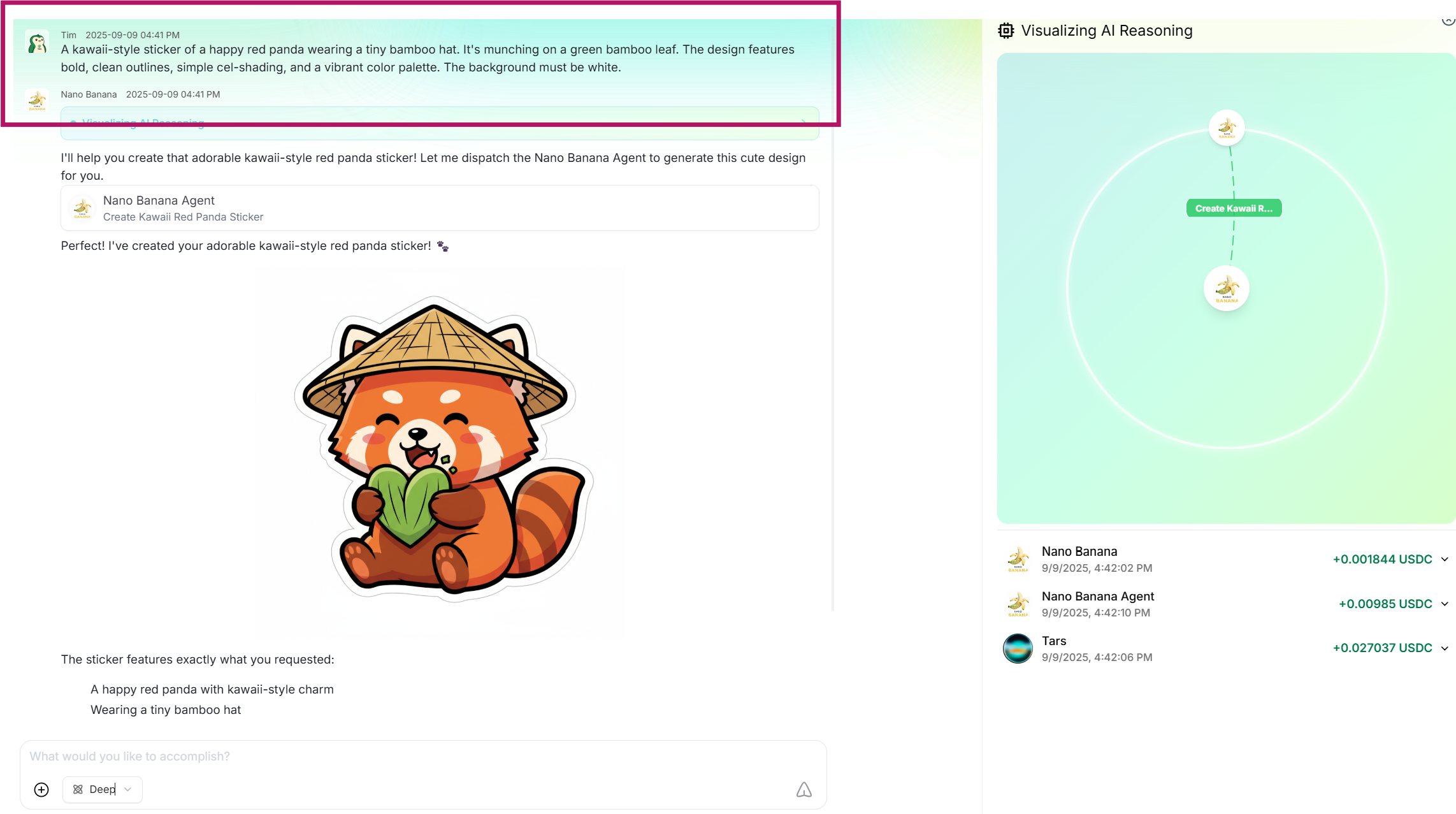 Nano Banana will process this instantly and generate a red panda sticker that matches your description.