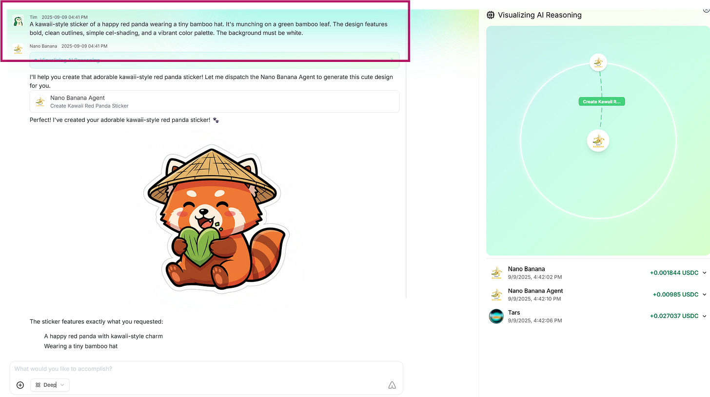 But agents can only be useful if they are accessible. That’s why our design philosophy goes beyond building individual agents. We focus on creating step-by-step user experiences, integrating external APIs, and turning expensive services into frictionless, pay-per-task utilities.