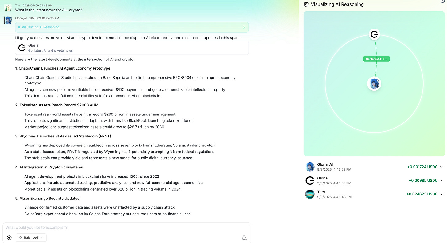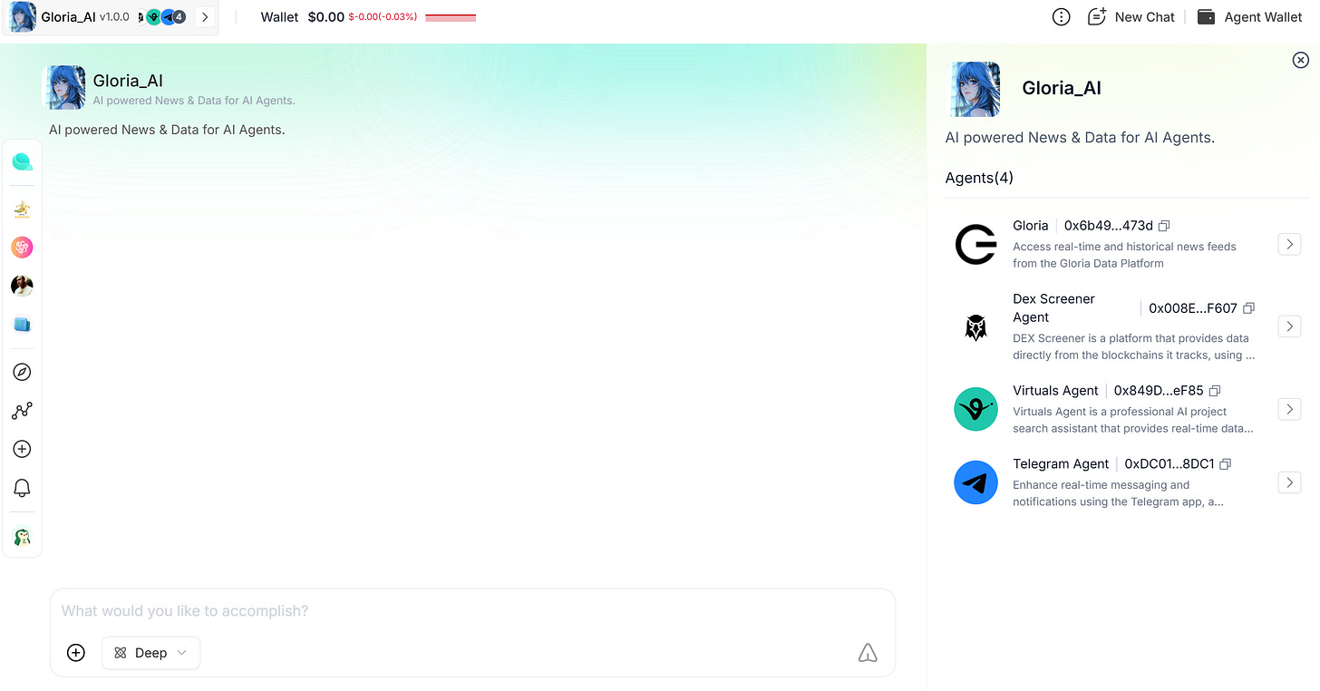 By chaining multiple agents, users can unlock entirely new workflows (e.g., Gloria_AI surfaces news → another agent trades on it → a third agent publishes insights).