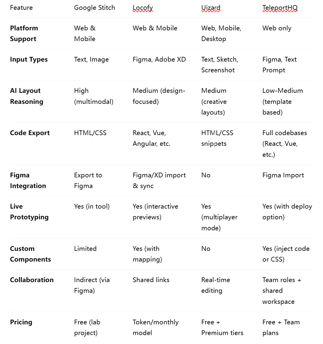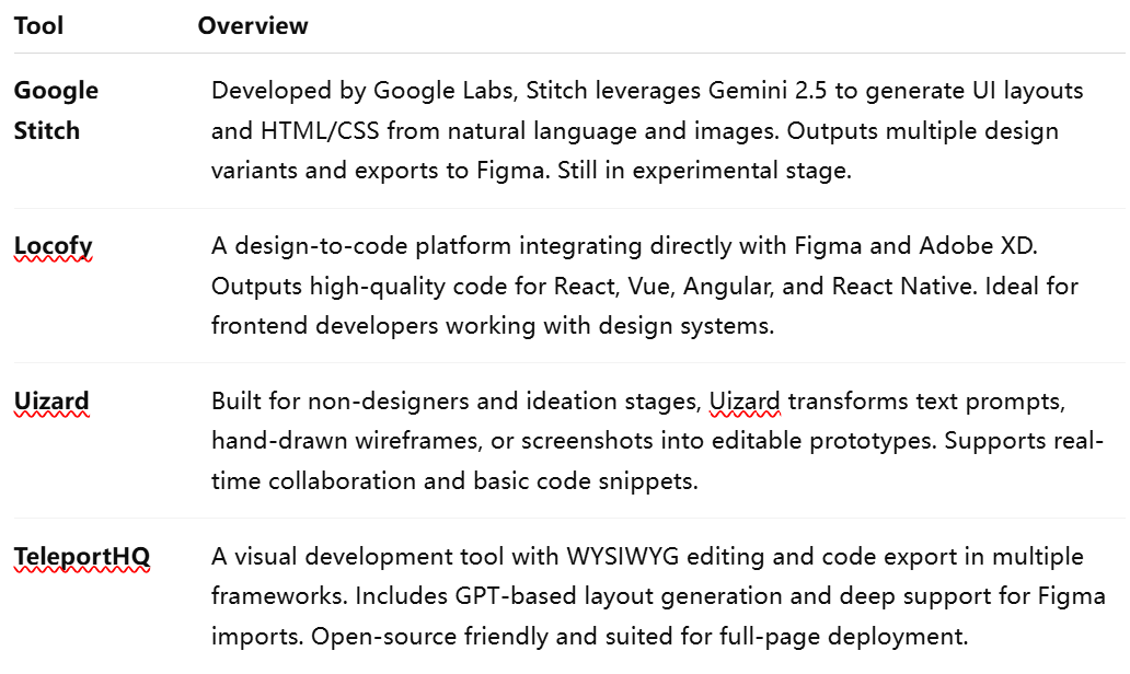 Enter a new breed of AI-powered tools. As large language models and multimodal AIs become more capable, they are beginning to automate not only the generation of copy or code, but the very interfaces through which we interact with digital products. Tools like Google Stitch, Locofy, Uizard, and TeleportHQ are pioneering this transformation. They promise to turn text descriptions, design sketches, and component libraries into functional, visually cohesive UI — with production-grade code — in a fraction of the traditional time.